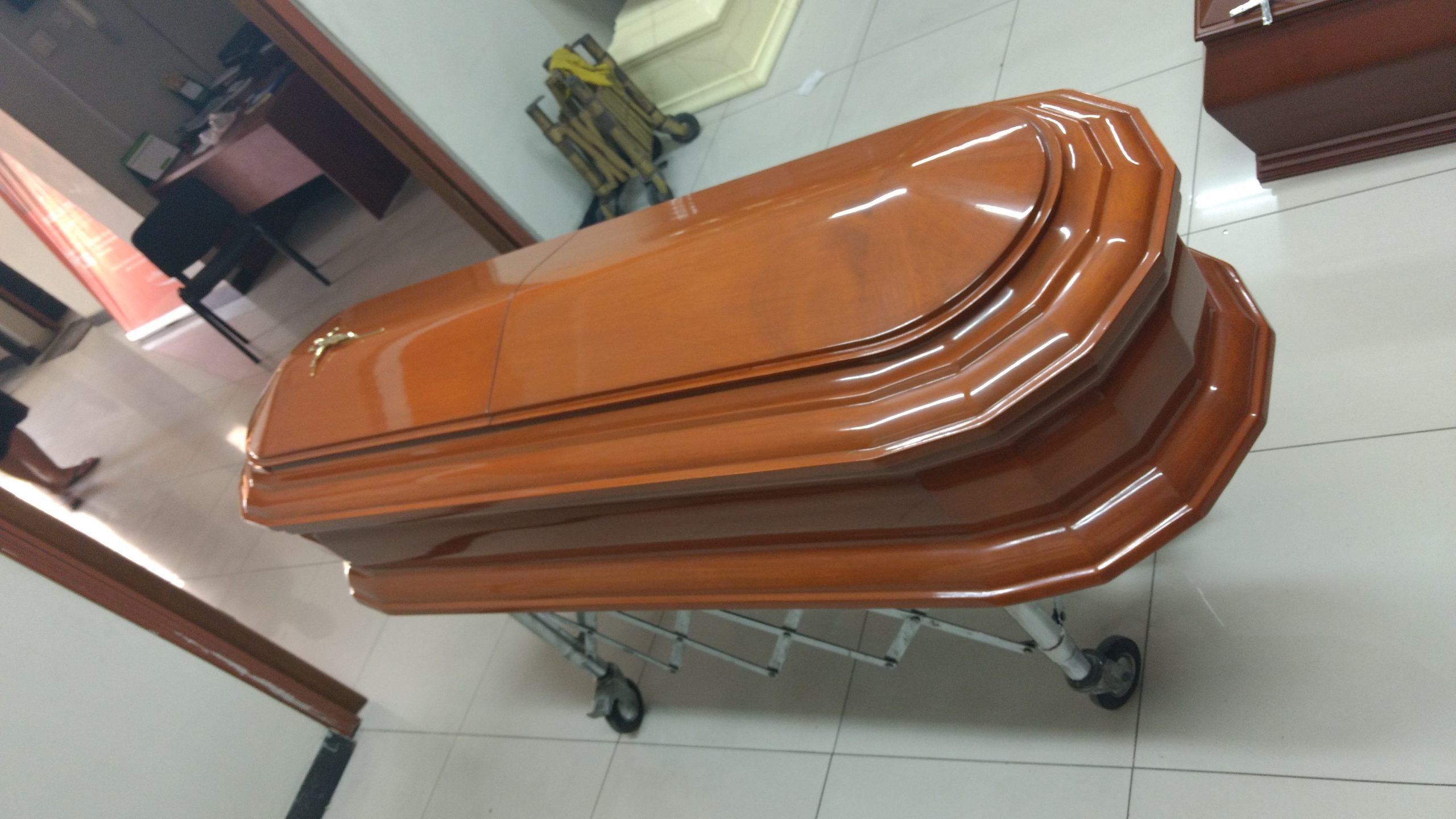 Elaborado en Madera procesada, acolchado en raso y adornos de bronce.